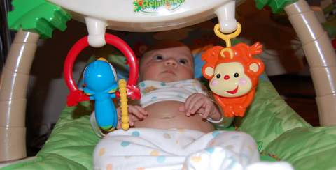 We met Mom back at the apartment and I had a pretty uneventful evening. We hung out, I did some tummy-time, and played in my bouncy chair and my swing. I got really fussy right before bed and actually screamed at the top of my lungs while I was nursing. Mom and Dad were struggling to figure out why I was so unhappy. Maybe I was hungry. Maybe I skipped a feeding earlier in the day. All these theories. After I finished everything Mom had to offer, Dad warmed up some milk and gave me a little extra bottle. Then. Phhhleeeeeeeeeeeegggggghhhhhhhhhhhppppppppppooooooopppppppppppkkkkkkkkkkkkkkkk. And if you think that sounded bad, well, it smelled even worse. I filled up my entire diaper with the mud-like poop. Not the mud like in a yummy mud pie. No, I’m talking about the mud that runs down the side of a mountain during a torrential rainstorm. Dad took about 10 deep breaths, held his breath, and took care of (my) business.
