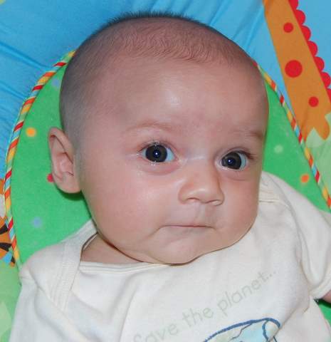 So, for the second day in a row, I was rudely awakened by Dad for my “overnight” (though now seemingly “early morning”) bottle.  I only drank 2.5 ounces before falling back to (noisy) sleep.  I made Mom’s day by smiling at her when she came to get me out of my crib at around 7:00 for breakfast.  I kind of got bored half way through eating and Mom put me in my bouncy seat while she pumped.  While I was amusing myself, I noticed that Minnie Mouse’s nose looks an awful lot like…a nipple!  Sadly, it’s a whole lot drier and tastes nasty!  Mom saved me by letting me finish the bottle I started a few hours earlier.