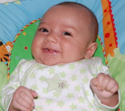 After we got back and ate, Mom and I had some fun playtime together. She taught me lots of new tricks, including situps and pullups. I’m also getting really good at rolling over (with help!), but at least I’m starting to figure out which parts of my body need to move to get me going in the right direction. I hung out in my bouncy seat and in the activity mat and Mom read me a few books…and of course, I napped a bit. Then Mom started not feeling well (what’s up with my parents lately? 3 of the last 5 days, one of them has been conked out?!) and so Dad came home a little early.