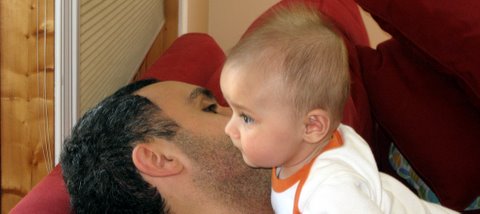 I got up for the day around 6:00 and as usual on a Sunday, Dad got up to hang out with me while Mom got to sleep in a bit.  We came downstairs and immediately started “exercising” — which is what Dad calls the various physical development drills that he puts me through every day.  I then played in my jumperoo while Dadquickly threw together a meal that would eventually be Mom’s and Dad’s lunch.