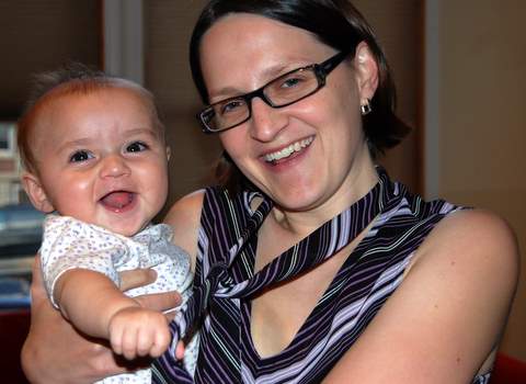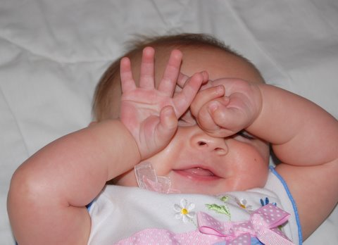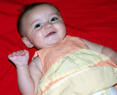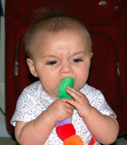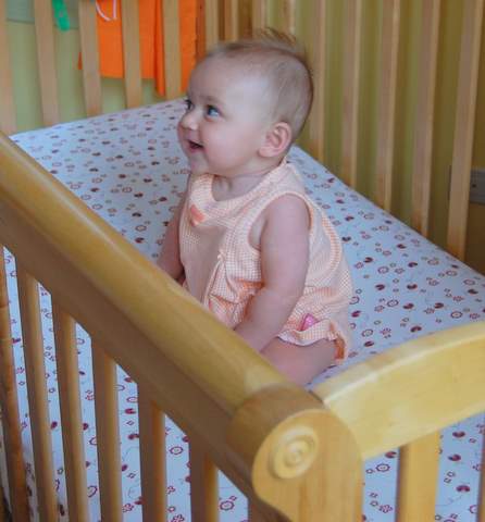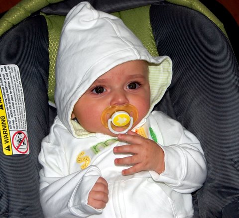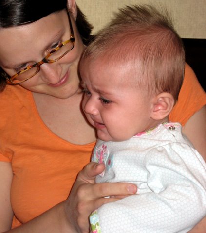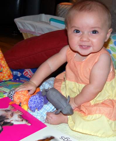 On Wednesday (which I found out was the fifteenth anniversary of my parents’ first date!) I was feeling a bit better and Nana let us go out and play in the yard a bit. It was pretty hard for me to fall asleep for my naps (I could barely breathe!), but when I did I slept really well (three hours in the afternoon!). The exciting news was that I had my fifth new solid food ever (the first being rice cereal, prunes, barley, and zucchini): peas. I devoured the peas just like all the other foods I’ve eaten.