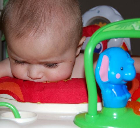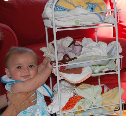 When Tuesday morning rolled around, I was showing all the symptoms: congestion, watery eyes, and a runny nose. The good news is that I definitely napped better than usual and I continued to eat and poop quite well. Nana decided to limit my toys to plastic ones that could be easily washed. This means that in addition to my usual roster of toys, I also got some Tupperware and measuring sups to play with. We also didn’t get to go on any walks.