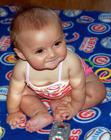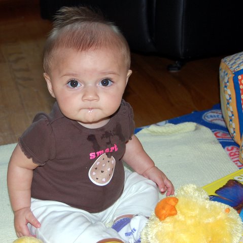 I ate (and I don’t mean drank!) breakfast (rice cereal, again) and this time Dad caught video footage of my meal. Al got back from his hot date and the four of us headed to Moonshine for lunch (some of you may recall that Moonshine was one of my very first outings back in March). We then headed to Oberweis for ice cream and then back home. Al held me and played with me before taking off.