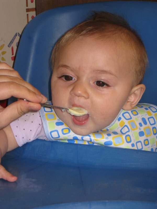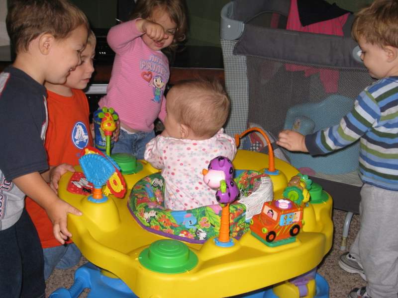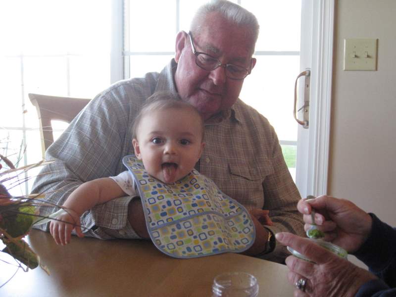 I woke up with Mom and she had quite an adventure getting my breakfast ready. The millet refused to warm up properly and she ended up having to put it and my prunes in a blender. But when she turned it on I got so scared and started screaming. I ate in my car seat (the high chair wasn’t assembled yet) and then played with Grandma Droste after I finished eating.