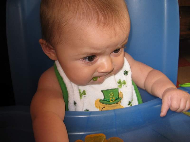I woke up Saturday morning with Mom and was in a really good mood when Aunt Sarah came and gave me my morning bottle. While I was eating grandma and mom left and headed to the airport for mom’s trip to Hawaii- Dad has a conference there next week and mom got to tag along (they were meeting up at the airport in Denver)! I played with AS for a while before eating breakfast and then decided today was the day to catch up on the sleep I’ve missed for the past couple days. I slept for three whole hours and woke up really happy.