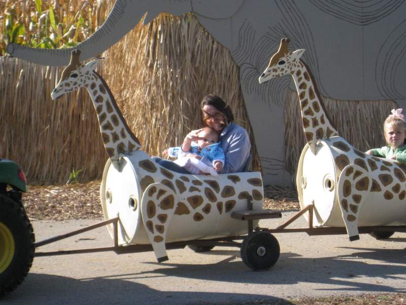 Mom & I headed out to Jerseyville so Mom could get a new license at the DMV. I slept on the way and through most of the time at the DMV. We then went to Wal-Mart and bought some diapers and a sweatshirt. We stopped by Grandma and Grandpa’s house to get my lunch (squash) then went to the Corn Maze to meet Grandma Droste. Grandma was running a field trip and I got to be her assistant! The big kids (2nd graders?) really liked me and made lots of faces at me. Then Mom & I took the scenic route back to the car and I got to see the pond and the fountain.