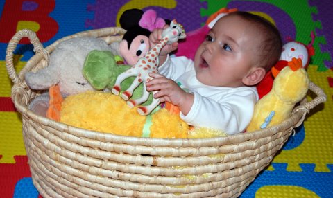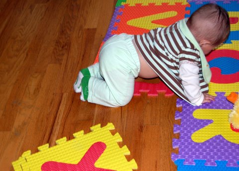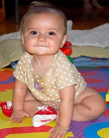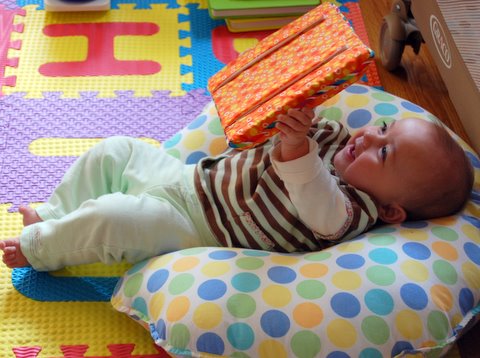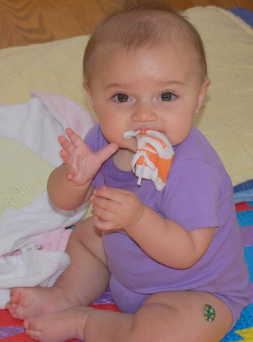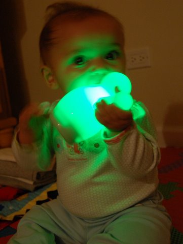 I woke up with both Mom & Dad this morning. Dad had bought me the crazy, whacked-out toy that lights up. I love it, I think. I definitely liked eating it! I played with Dad while Mom got ready for work.