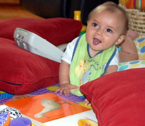 I did well pretty well on the really short flight down to St. Louis. I spent a lot time jumping up and down on Mom’s lap. Everyone thought I was so cute! I shrieked a couple times, but otherwise didn’t cause too much trouble. I had a bottle on the plane and rested in Mom’s arms, but never quite got to sleep.