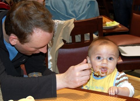 Today was my second day eating three meals a day, which was fun. When we got back from our outing, I ate peas and then took a nap. The three of us spent a lot of time together all afternoon and evening. Dad tried to make me do tummy-time, but I wasn’t having any of that. I love standing up, though! Dad’s trying to figure out how to get me cruising ASAP!