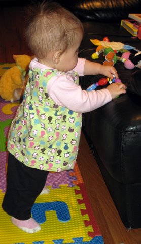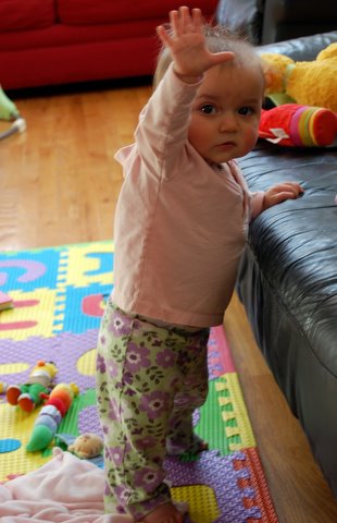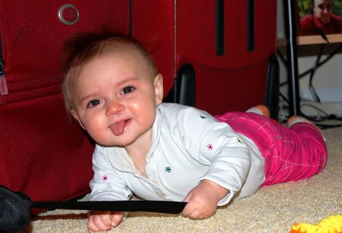 Wednesday got off to a good start when I got to say hi to Aunt Claire when she called Grandma Droste from India! Grandma and I sang together and played Pat-a-Cake and then I crawled all the way from my playmat to my favorite room in the whole house, the small bathroom attached to the living room.