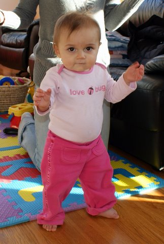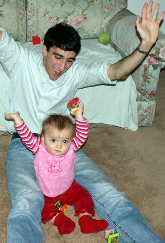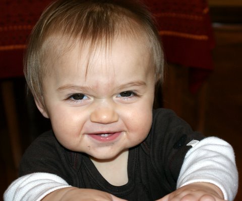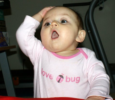 I didn’t wake up from my nap until 5:30, so my day was almost over. I played with Mom and Dad (mostly Mom). I crawled, I danced, and I had a good time. Dad keeps trying to get me to learn how to go down the two steps from the kitchen to the living room and he also keeps trying to trick me into standing up all by myself. Usually, he fails.