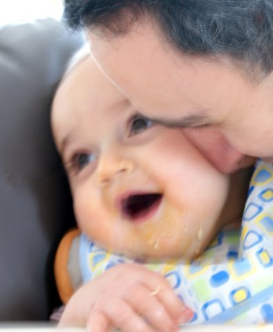 Dad got home around 8:20 and we were so excited to see each other. We just made strange noises and he kissed me a million times. Dad put me to bed for my nap and when I got up, it was time to go to the grocery stores, as usual on Saturday mornings. Whole Foods was the first stop. I waved to everyone I saw (both hi and bye) and everyone there was really nice. There was even this one customer we met who would shriek back and me whenever I shrieked at him!