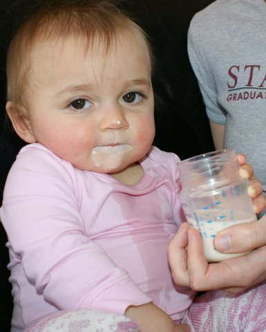 At 3:00 I accidentally weaned myself from my second bottle. I refused to cooperate with Dad’s attempts to give me my bottle, so Dad put my formula in a cup and I actually drank most of it (well, most of what didn’t end up on my clothes). I think this may become standard! After I ate I got to take a nap with Mom in her bed. That’s my favorite! Dad didn’t join us because he was cooking some food for me.