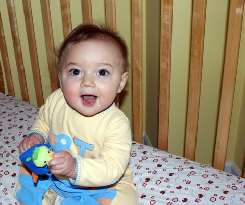 For the second day in a row, I woke up “late” — well after 7:00. So much for my being a morning person. Aunt Claire got up with me, gave me my bottle, and played with me before breakfast.