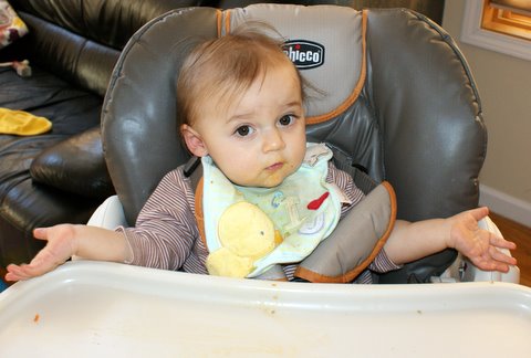 Mon and I played quite a bit of pat-a-cake and then I got a bath (even though I took one yesterday!). Apparently Mom doesn’t think it’s a good idea for me to go to sleep with food in my hair. What’s the big deal with that?