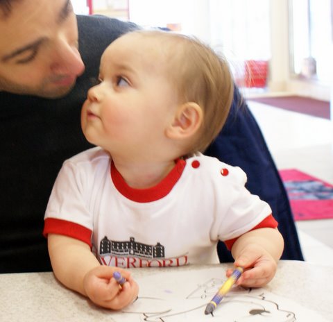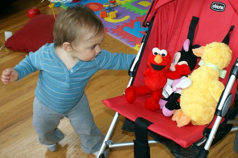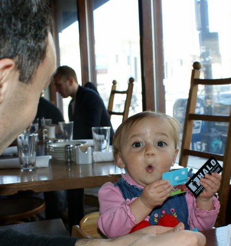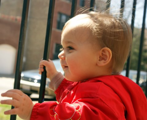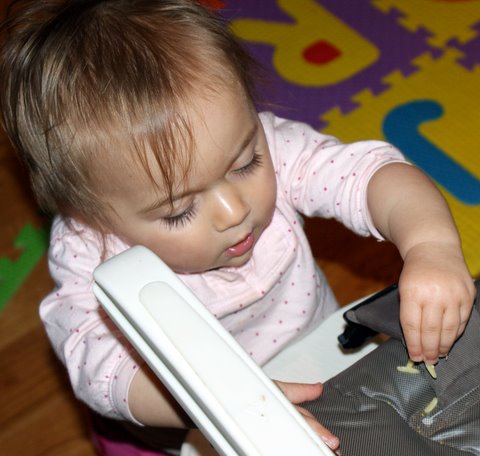 We hopped in the car and went to Target, Gap, and Old Navy. I had a lot of fun crawling under the door in and out of Dad’s dressing room while he was trying on jeans. I took my afternoon nap and then we all celebrated the beautiful day by taking a trip to the park. I swung, I climbed, and I even hopped with Mom on one of rides.