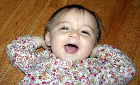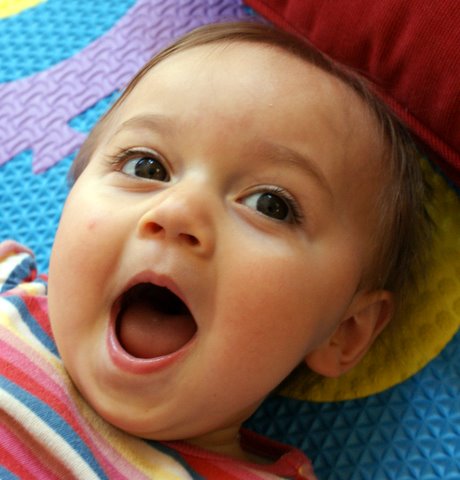 I got up and started babbling at 6:15 and hung out with myself until about 6:35 when I was taken out of my crib by…Grandma Droste! I was simultaneously delighted to see her and shocked not to see Mom or Dad! Grandma let me pick out my own often and then we hung out in my bedroom, reading books and playing with Fred the Frog (which I learned that Mom’s grandma made for her when she was my age!). Grandma Droste likes to spend more time in my room than anyone else — maybe because we’re eye-to-eye with the birds in the trees!