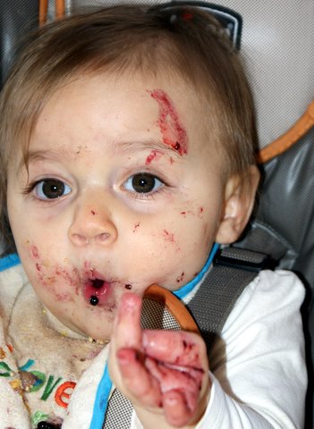 I had a great breakfast with most of my favorites — oatmeal, cereal, prunes, and strawberries. I even drank almost a whole glass of milk! I got a good nap in and then Grandma and I went for a walk until lunch time.