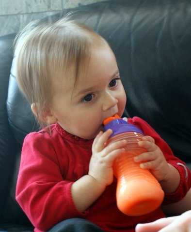 Today was a pretty yucky day, so we mostly stayed in. It was nice enough for a while to go out for a walk. We went to Oberweis (of course) and K-Mart, where we bought a new drinking contraption. It took me a while to figure it out. I started out trying to blow as hard I could into the straw, but that didn’t get me any milk. Finally I figured it out and was so happy!