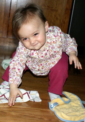 I’ve now started to say “purr” when I mean “more.” I also like to read my ABC book while I’m standing up against our black couch. I also understood my most complicated sentence ever today: “Go get the Elmo book and put it over there.” Exciting, I know.