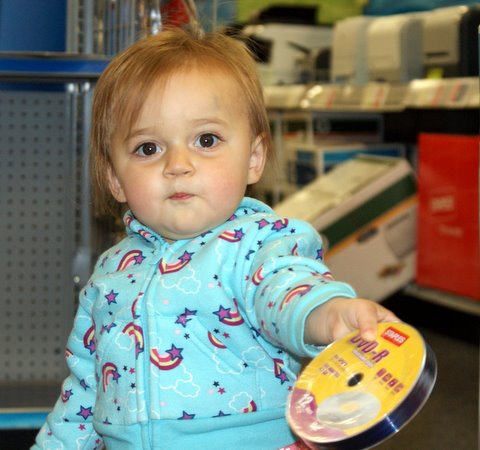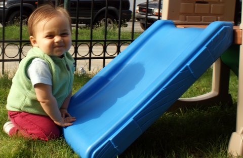 I took a short nap (9:45 to 10:30) and was back at it. I had a meatball, quesadilla, and bunch of veggies for lunch. We played more, but it was a bit chilly outside. I took a longer nap in the afternoon (3:40 to 5:15) and soon after I got up, Mom was home. I had fun playing with her — we even played down in the office, which is very rare for Mom to do. Dad got home and joined the fun and gave me a bath.