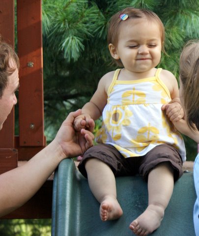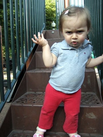 I went on the swing, played on the jungle gym, and then we went over to the fountain area, where 5 or 6 kids were playing in the water. Mom took my shoes off and I inched in slowly toward the water. I was getting light sprinkles, which I liked, but then I took a big step and this girl accidentally sprayed a huge stream of water at me! I froze for a second, but then I LOVED it. I stood there, getting wet, smiling as big as possible. I was getting a bit too wet, so I dashed out of the fountain and stepped on the HOT ground. I started screaming “hot, hot” until Mom picked me up.