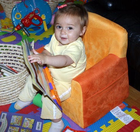 My sleep schedule was off a bit because I didn’t fall asleep in the car until 8:30. Anyway, I slept in until 7:30 today, when Dad came into get me. It was already time for breakfast, as after I got dressed, it straight into my high chair. A few minutes later, Mom came downstairs — she took today off to spend more time with me!