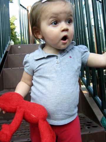 Just as we left home, I dropped Duck out of my stroller. About 4 blocks later, Mom realized we were short a stuffed animal, so Mom and I had to backtrack, only to find Duck laying sadly on the road, next to the curb. Luckily, he was ok!