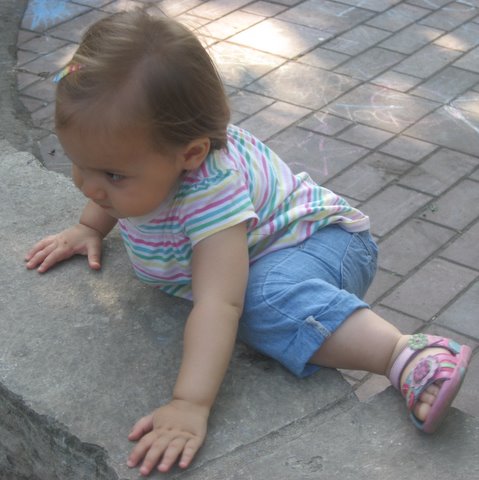 As soon as we got inside, I devored some peach yogurt but I was too hot to fall asleep right away. It took me about half an hour to fall asleep, but it was a good, deep sleep when it finally came. When I got up, we pertty much went right back out to the park. I made two new friends, Eleni and Lydia. They were a lot older than me, but they were so nice! They played with me, pushed me in the swing, and even shared their toys with me. I was having so much fun that Dad let me stay out much later than usual.