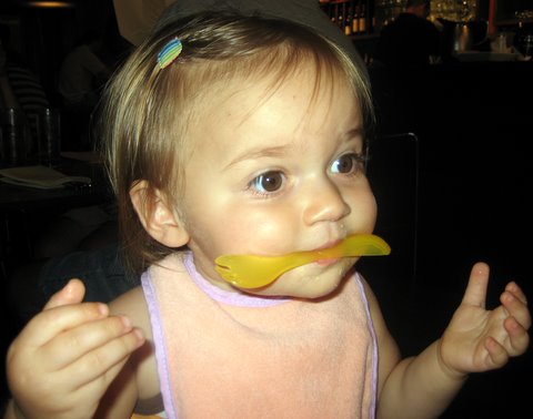 Tuesday was a good day at school. I really loved playing with the kitchen toys and I had fun entertaining the babies in the infant room before breakfast. I hardly cried when Mom left me! Dad was home when Mom and I got in, but he took off for the airport before I went to bed. I got to practice the stairs and loved the lentil burger I had for dinner!