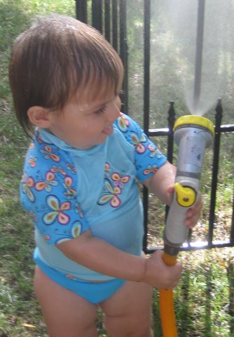 Wednesday was a great day from the very beginning. I woke up in a great mood and greeted Nana very enthusiasitcally. After breakfast, we walked (on foot!) around the block and then changed into my swimsuit for fun in the yard! We had a lot of fun playing all kinds of new games together. We came in tried off, played some more, and then it was already nap time.