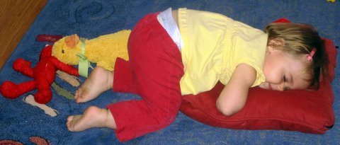I got up on Monday with Dad. I still had a runny nose, but I was in a very good mood by the time Nana came over. After I finished eating, Nana and I went for a very long long, including a visit to the park. I was being especially talkative and when I got back home I had a pretty good snack: a slice of cheese, a whole peach, and milk. With all that yumminess in my tummy, I slept for almost two hours.