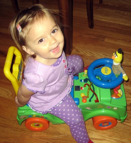 I woke up Monday morning and was so excited to see Aunt Claire! After breakfast, Aunt Claire and I dropped Jake off at the train station and then we played together until Nana came at 10:30. I was in a good mood and at 11:30 I asked Nana for food, so she knew it was lunch time. I ate Nana’s zucchini, drank some milk, and had a few grapes for lunch. I slept from 1-3 and woke up in a great mood.