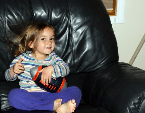 I was so excited to wake up with Aunt Sarah!  I miss her so much.  She got me up and we played until dinner time.  I ate Grandma’s chili (and had a chili-eating contest with her!) and got three treats (two for having no accidents and a bonus one for being a great big sister) before going to bed.