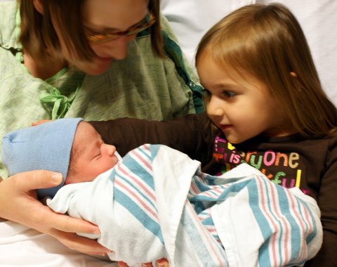 When we got there I was greeted by Mom & Dad (and Grandma & Grandpa Droste).  I gave Mom a huge hug and sat on her very goofy bed (it had buttons that made it go up and down!).  Then Grandma Droste brought over the baby that just came out of Mommy’s tummy: a little baby boy named Jack!