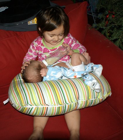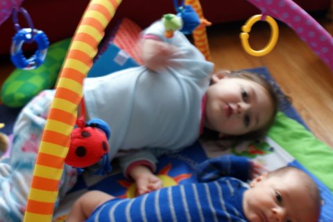 So, one of the coolest things about being a big sister is that I’ve gotten so many “Congratulations on being a big sister” presents!  I’ve gotten games, puzzles, clothes, and dolls.  I’m really starting to like this whole big sister thing!  I’m also really enjoying having Jack around.  I like holding him, touching him, and swinging his swing really, really high.